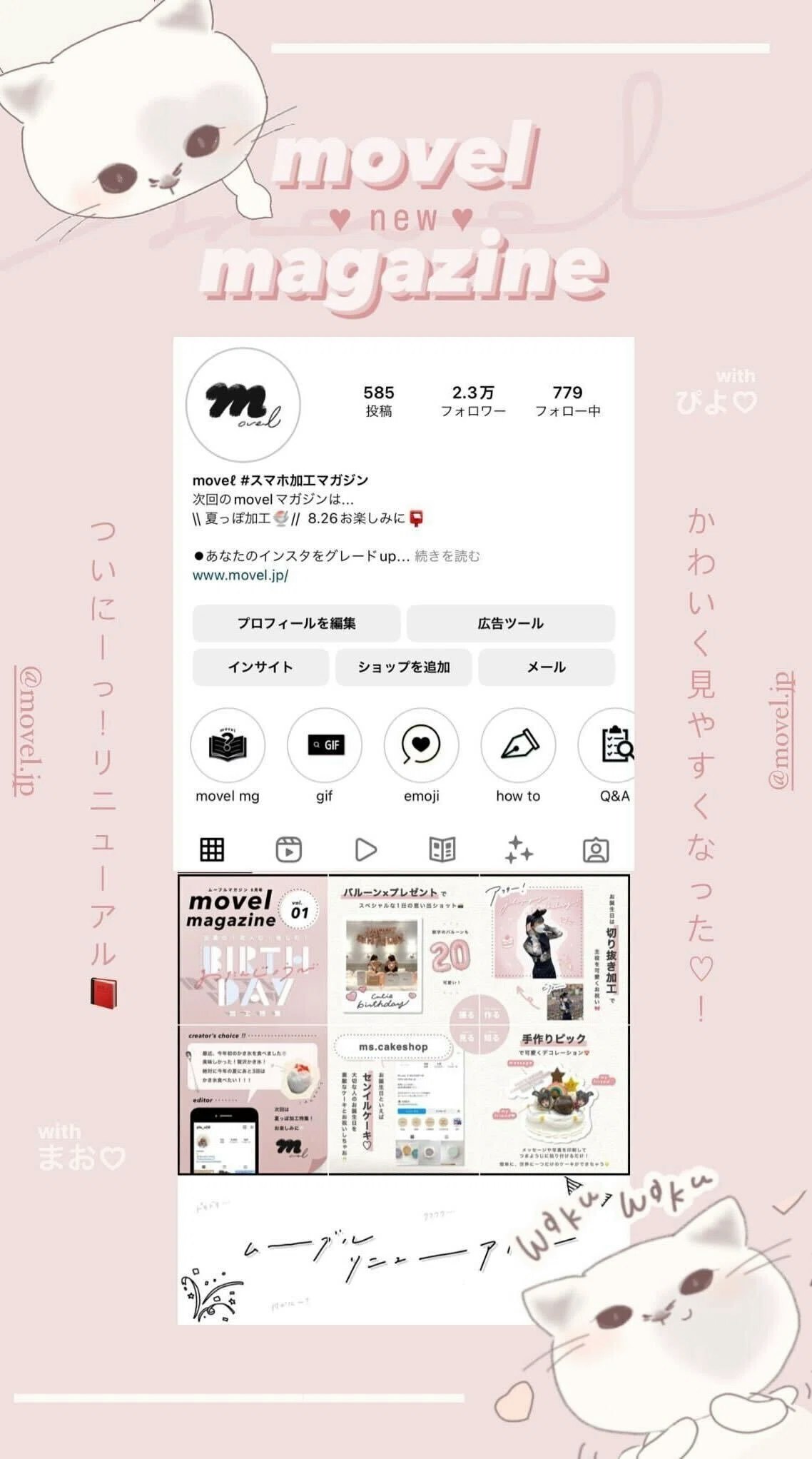 友達からも「になのインスタ加工可愛い!」と言ってもらえることが多く、movelの公式Instagramマガジン『movel magazine』 のクリエイターも任せてもらっています。